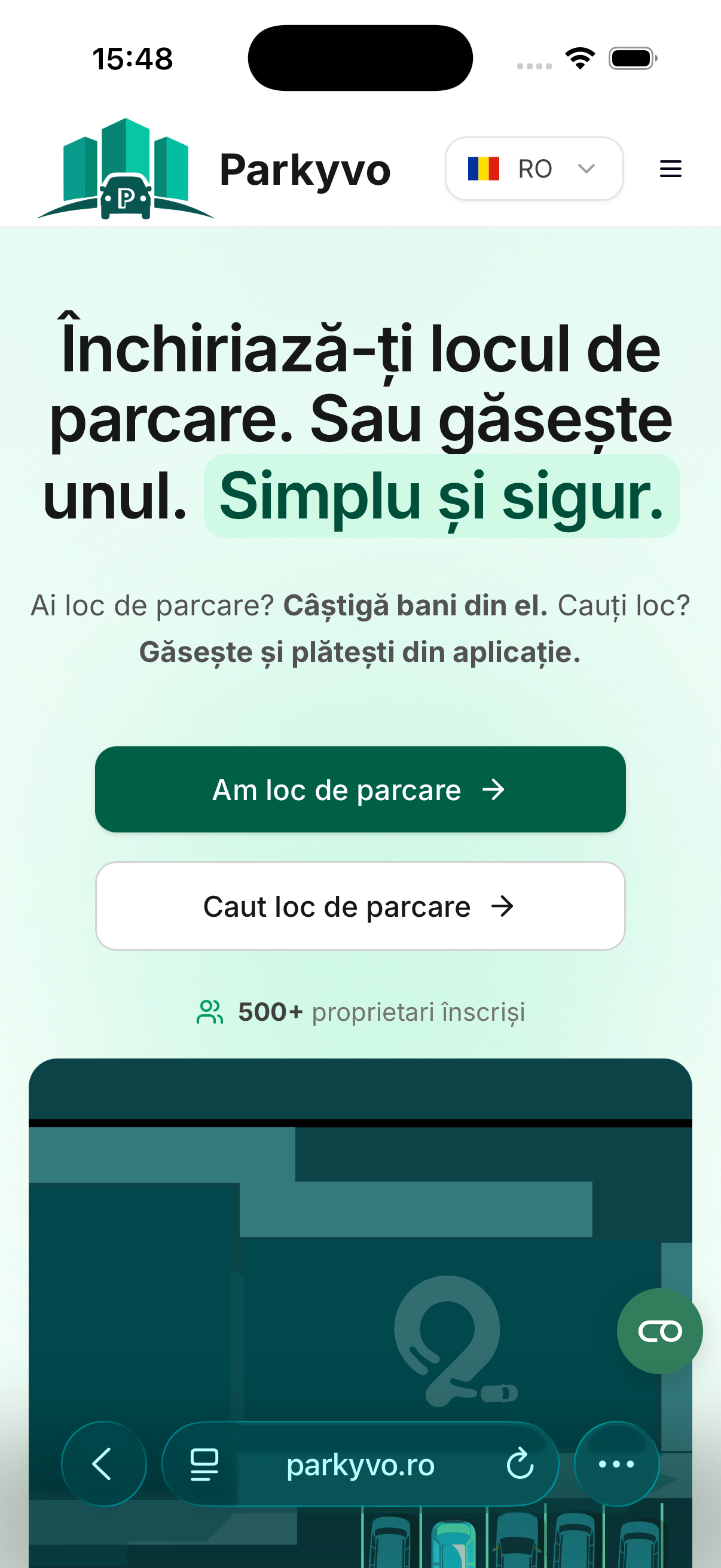 Platform for renting private parking spaces for a fee, for individuals and companies